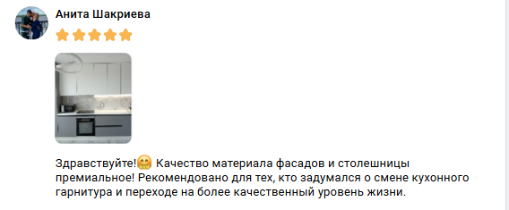 Спустя оговоренные сроки вы получаете новую кухню. Доставка и сборка - включены!