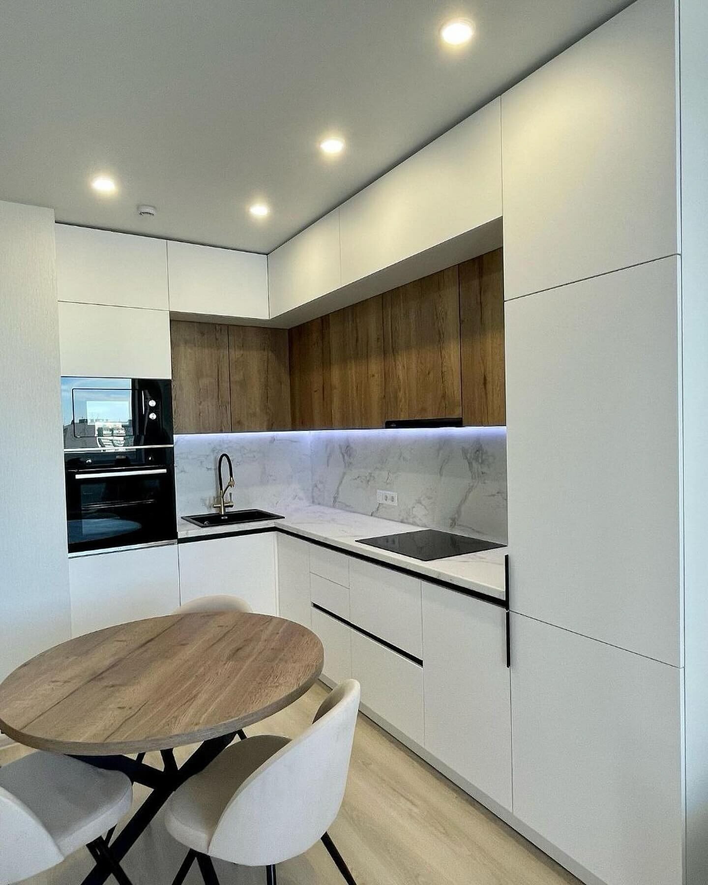 🔻 Фурнитура: профиль Гола черный, фурнитура с доводчиками Блюм, сушка, цоколь, подсветка, плинтус.