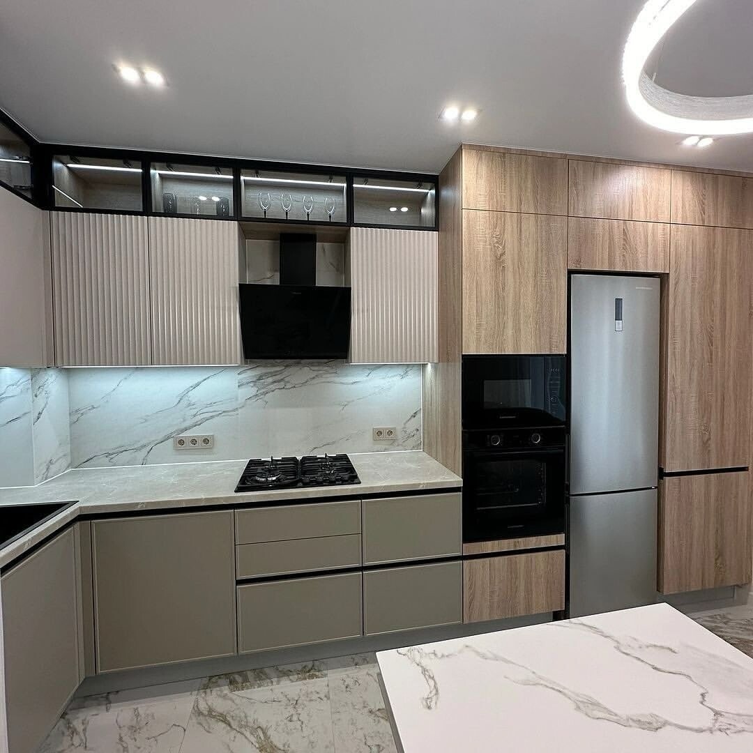 🔻 Фурнитура: фурнитура, сушка, цоколь, подсветка, плинтус, ручки профильные.